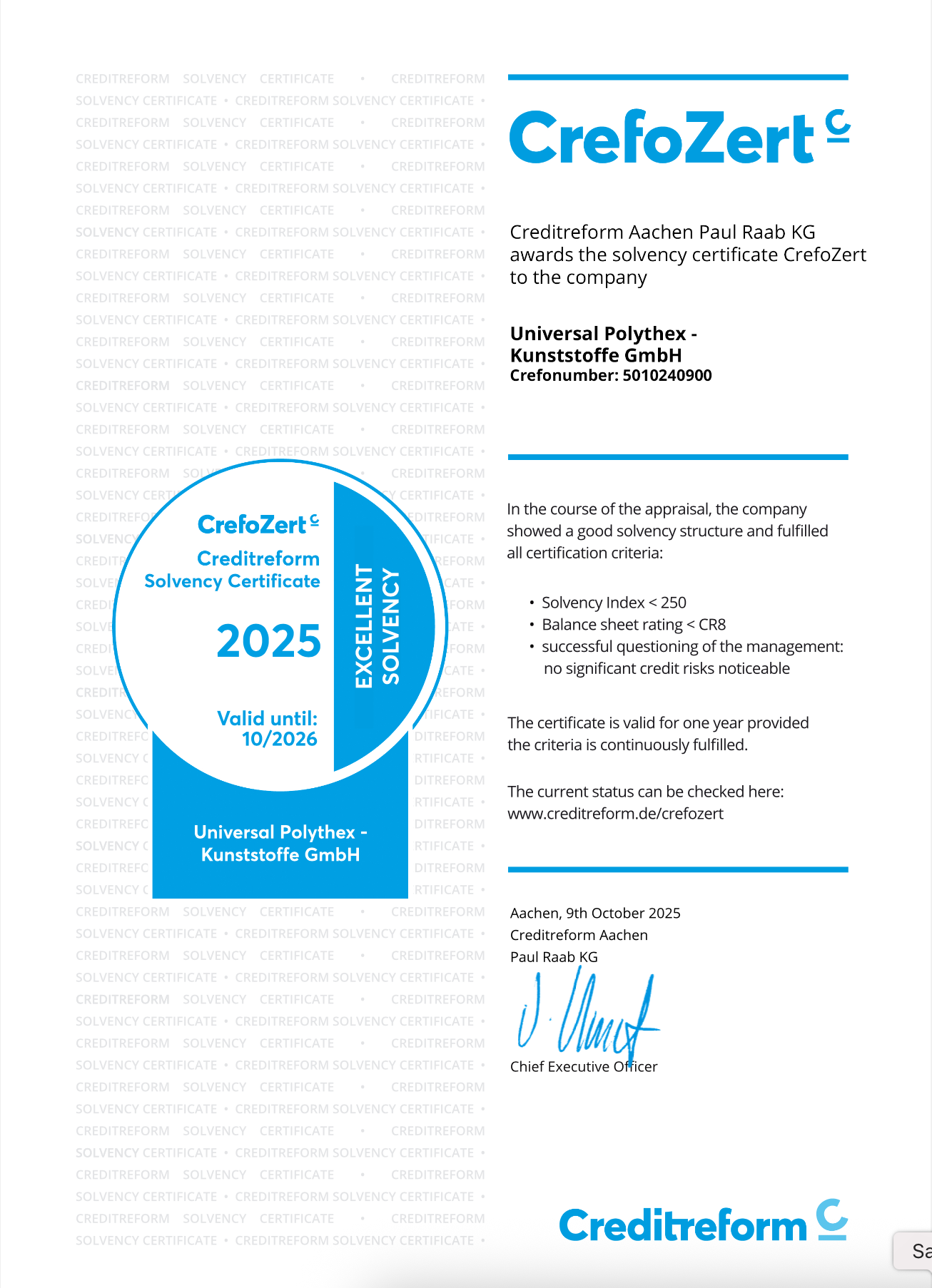 We’re very proud to have received the CrefoZert certification from Creditreform again this year as we did In the previous years.